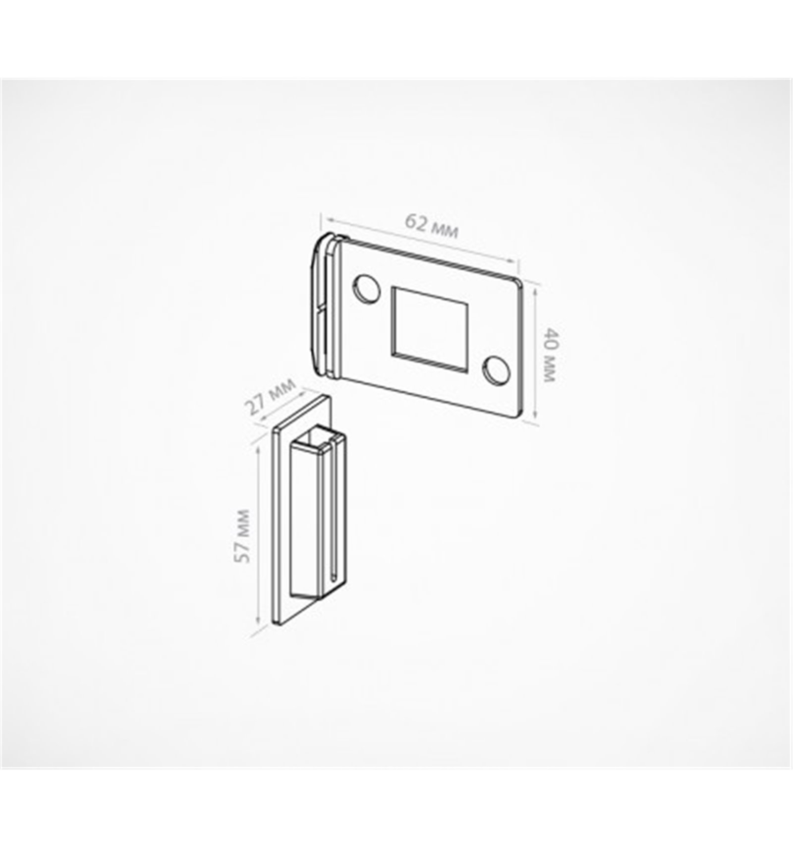 Kit sustinere rafturi, din 2 bucati, pentru insert in displayuri de carton. Suport: 27 mm x 66 mm, baza: 47 mm x 56 mm.