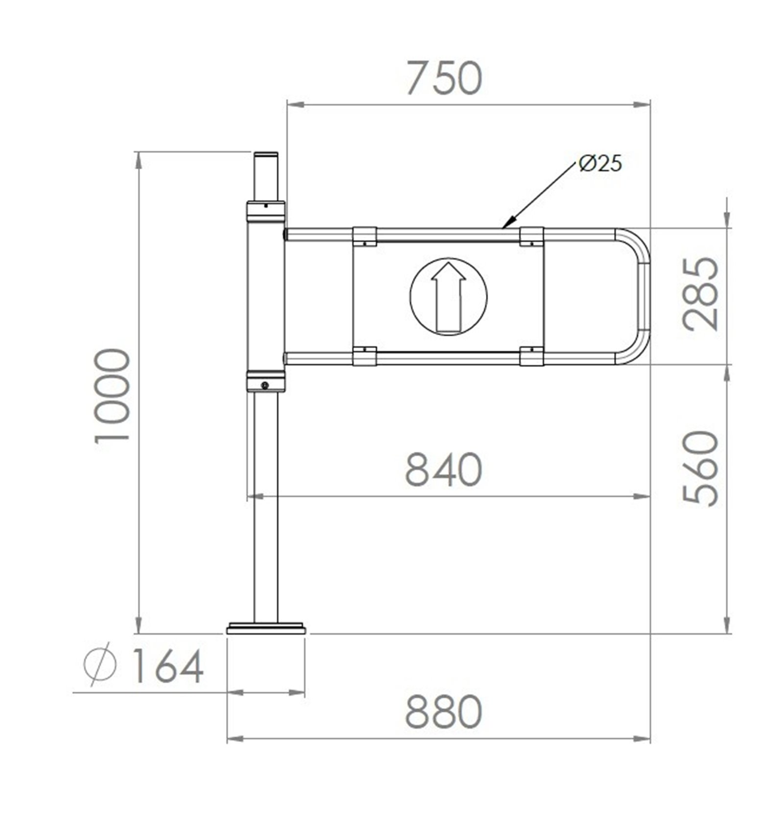Lungime brat poarta: 750 mm.